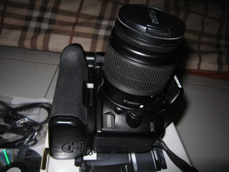 -Kamera,Battrey Grip,strap ri,DUS,charger,kabel AV,kabel data, dan tanda bukti pembelian (2009) oktagon, bekas garansi ex Data Script